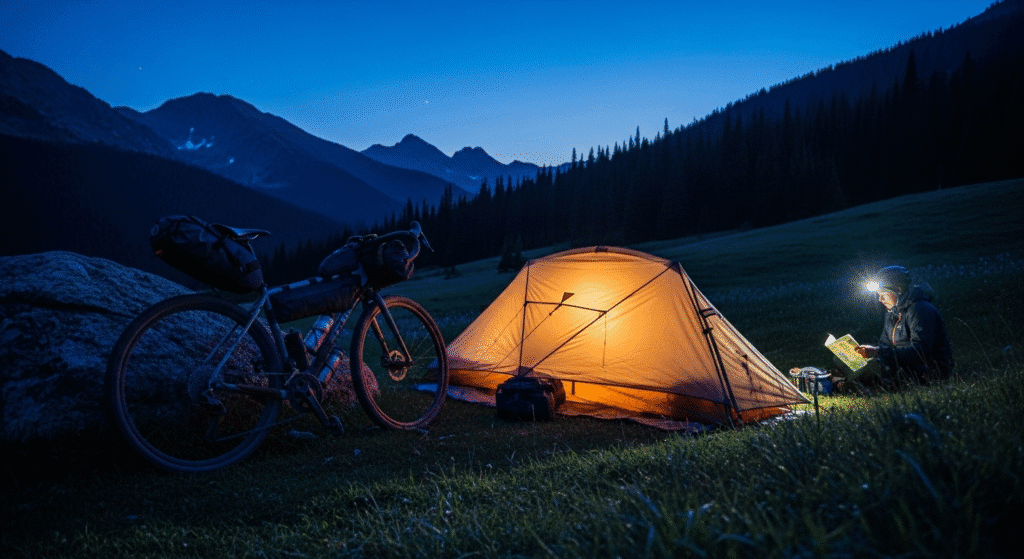 Où dormir en bikepacking : bivouac, camping sauvage ou hébergements ? Régles, matériel léger et astuces pour optimiser vos nuits à vélo en France.